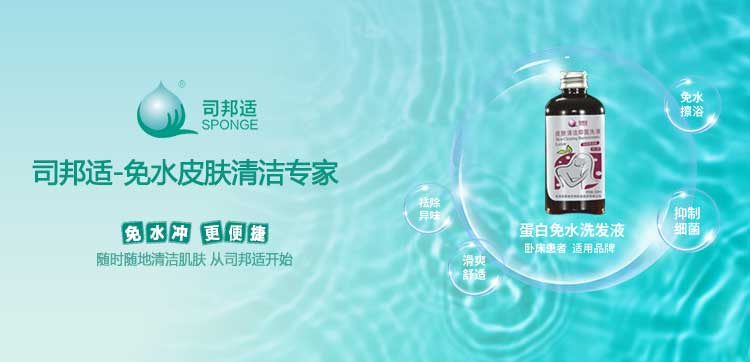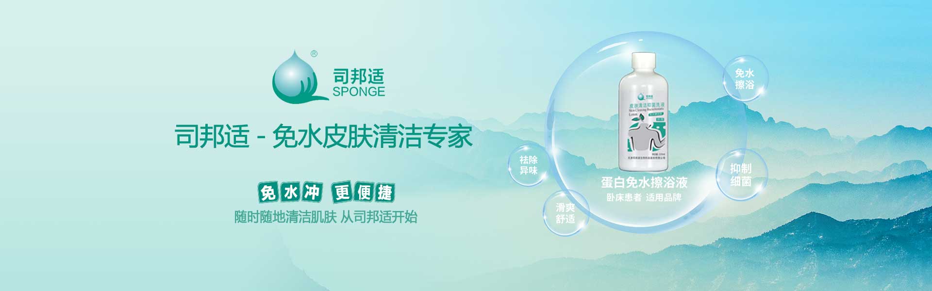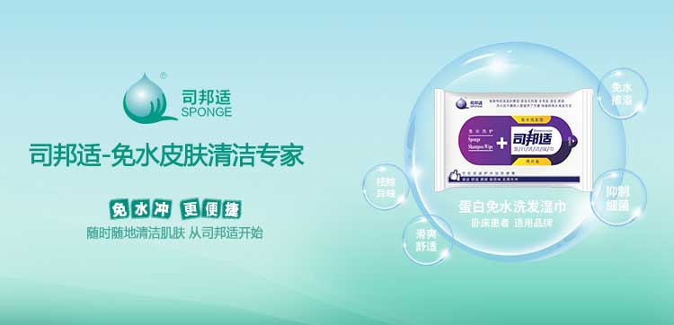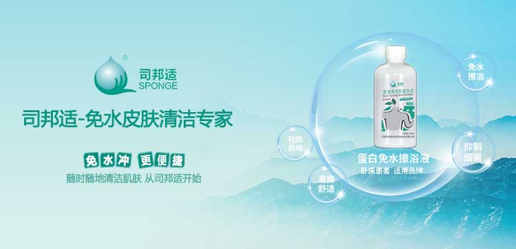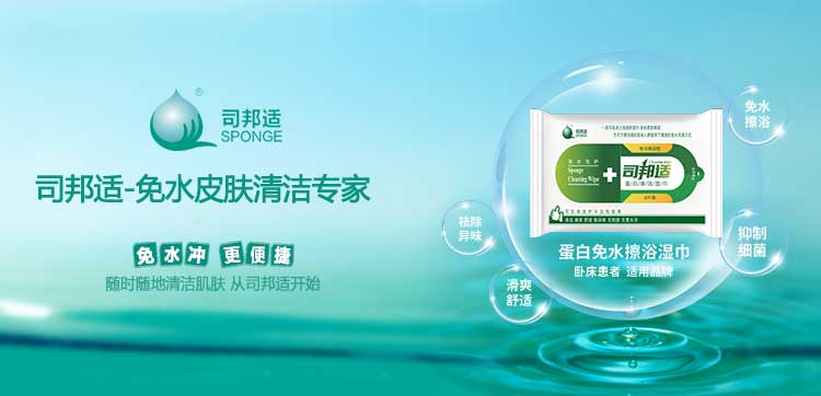 ? ? ? ?本公司研發(fā)的司邦適蛋白表面活性因子,不僅對(duì)人體皮膚及粘膜沒有刺激,同時(shí)具有對(duì)皮膚很強(qiáng)的清潔能力;可以祛除人體皮膚上的異味,并且具有較強(qiáng)的抑菌功效。使用后無需用水沖洗皮膚仍感到舒適爽滑;基于上述原因我們研發(fā)的司邦適免水清潔系列產(chǎn)品。主要適用于各種主觀或者客觀上不方便全身或局部皮膚清潔的人群。